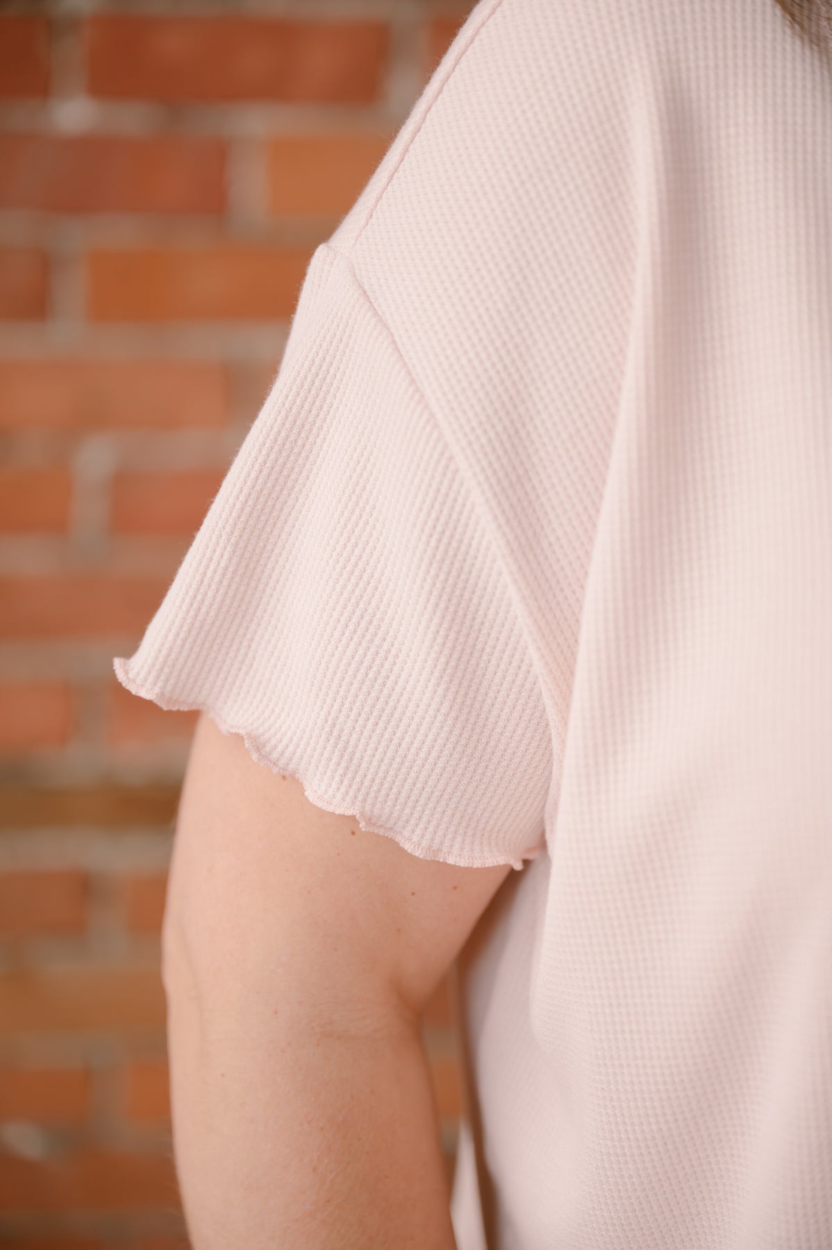 Effortless elegance meets everyday comfort in this Swift Lace Trim Waffle Top. The delicate lace detailing at the neckline and sleeves adds a touch of refined femininity, while the soft powder pink hue works seamlessly with your existing wardrobe.