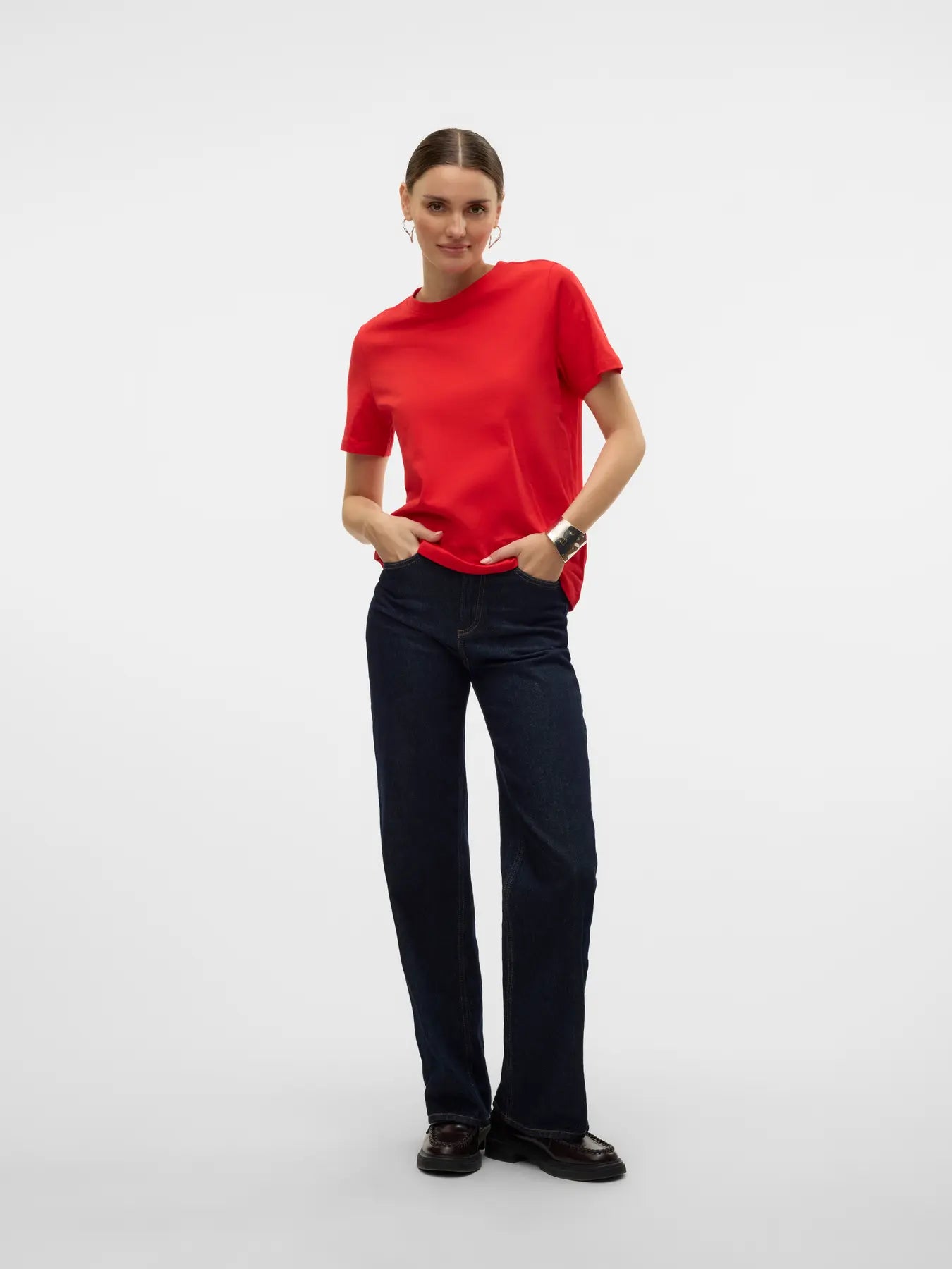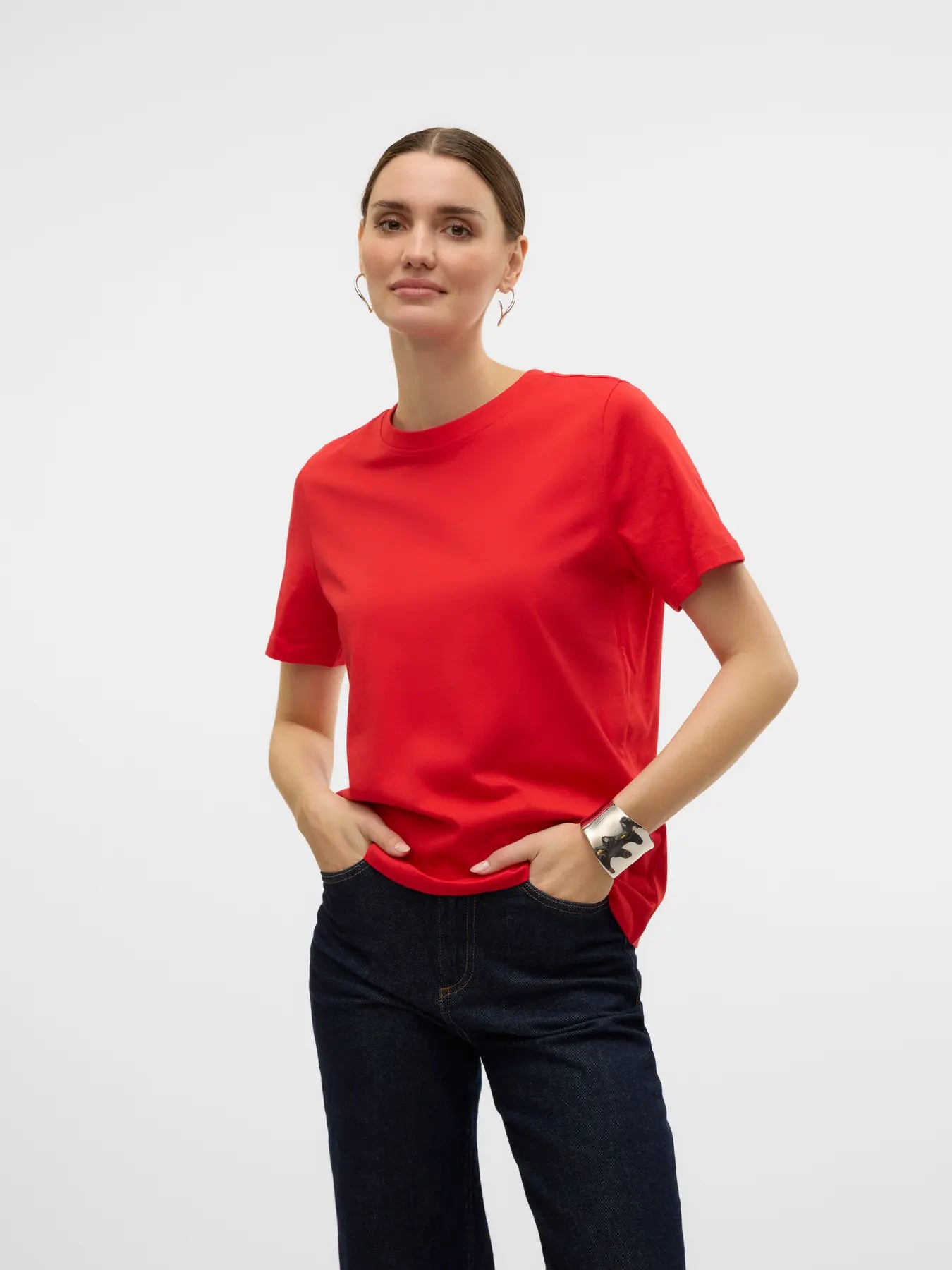 Basics are inevitable to find in almost every wardrobe out there. Our basic tops help bind an outfit together and this top makes no exception. Wear it with a shacket on top, a pair of relaxed mom-jeans, and chunky boots and you get a relaxed and cool everyday look.