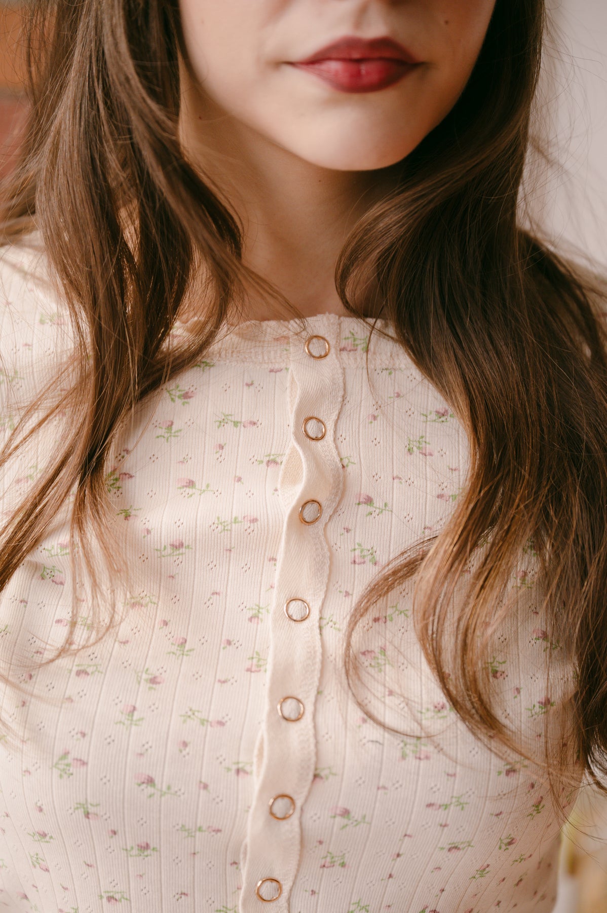 The Lilia Button Front Tank in Vintage Rose combines romantic details with wearable sophistication. Delicate pintuck stitching and black lace accents add visual interest, while the cinched waist creates a flattering, defined silhouette. Charming shoulder frills elevate the design with feminine flair, and the regular fit ensures comfortable everyday wear.