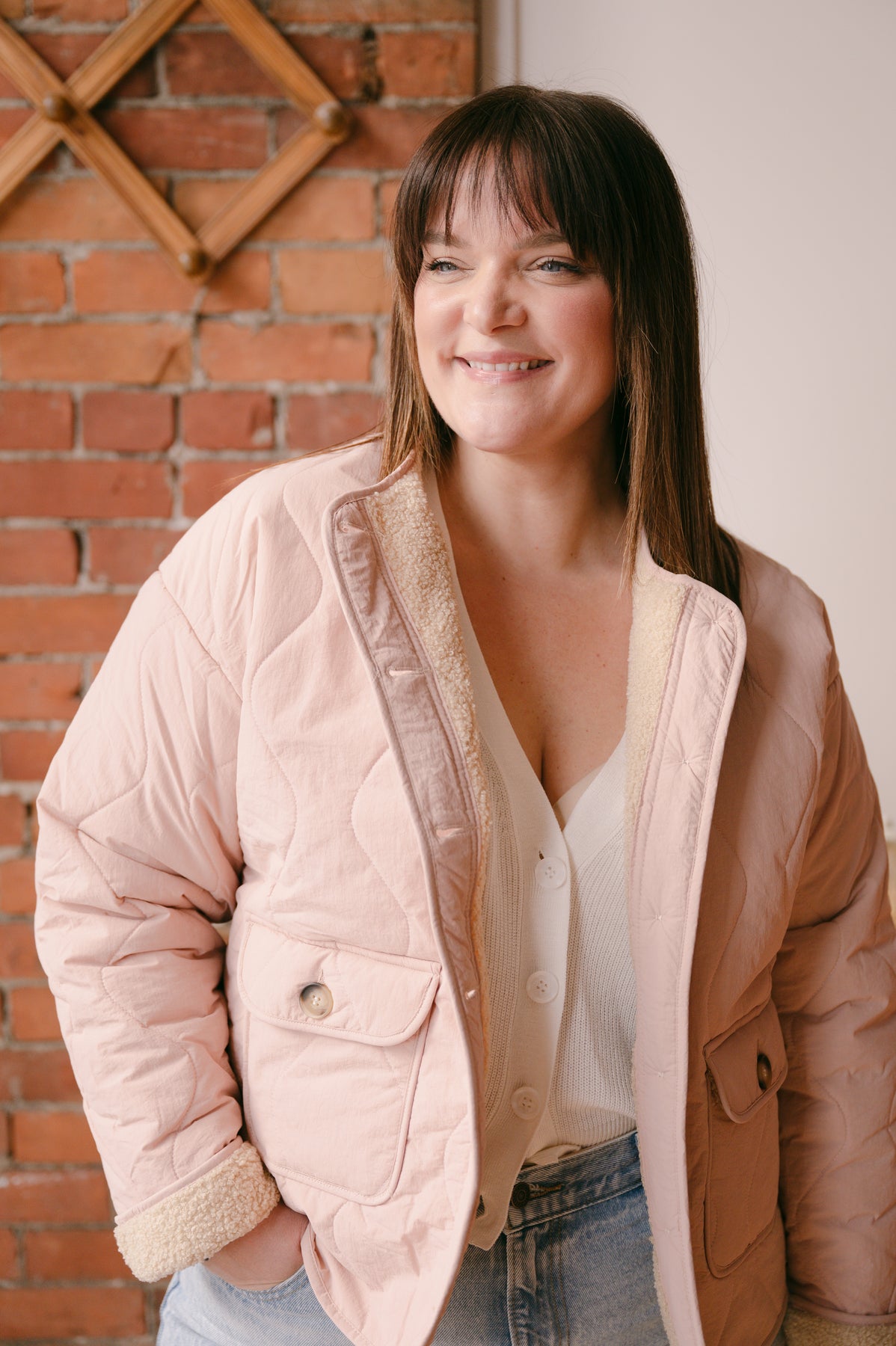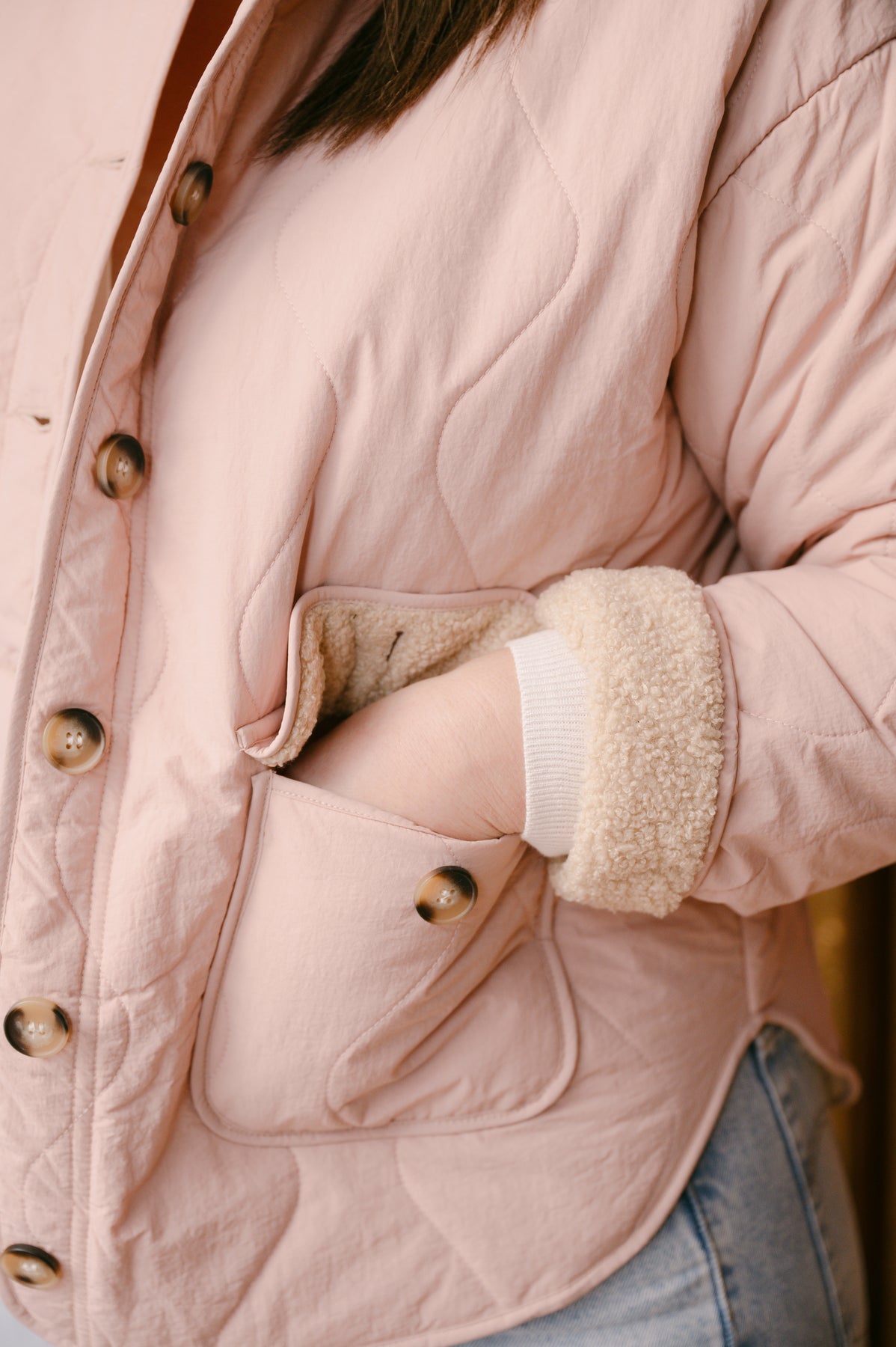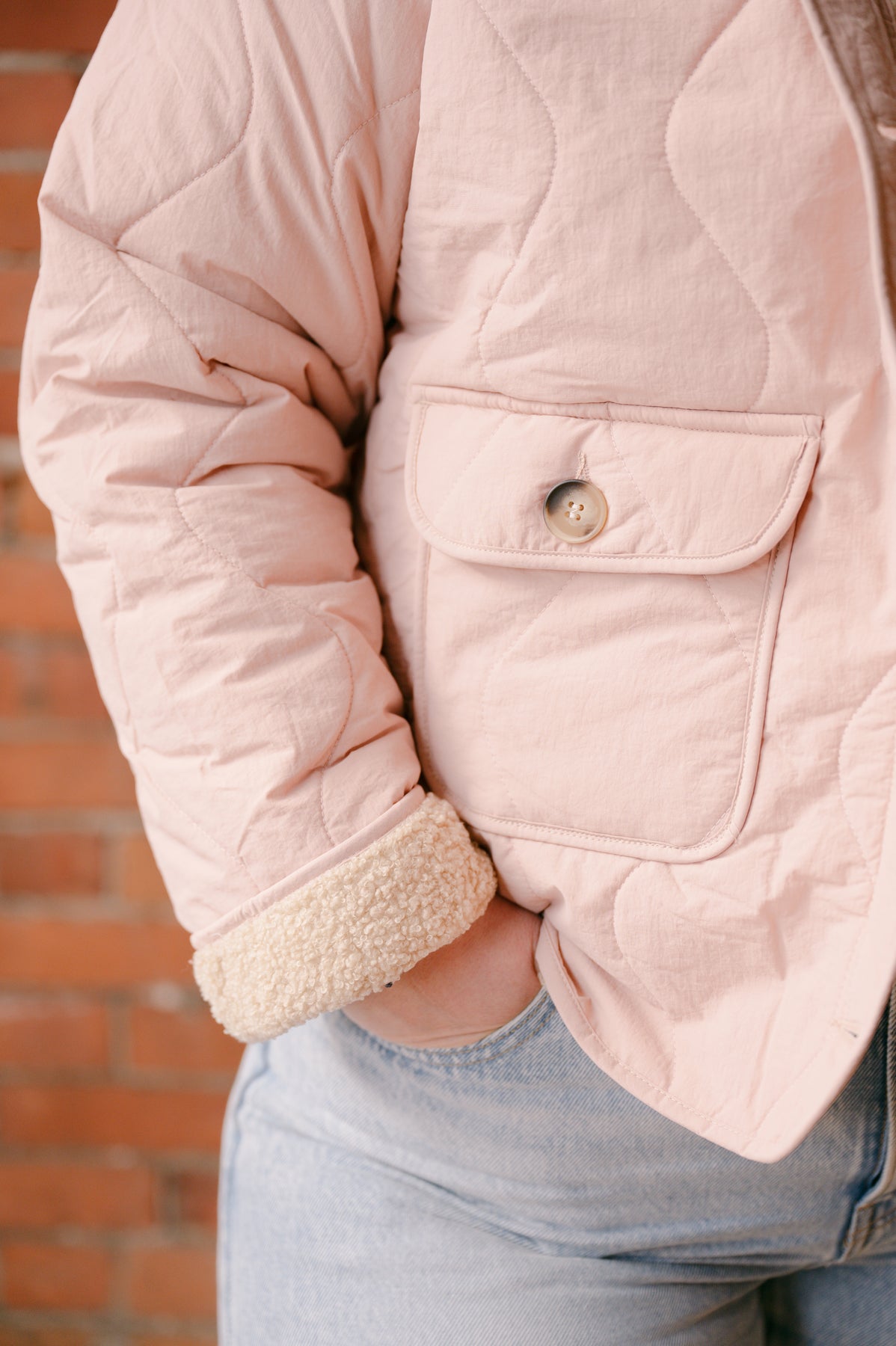 Quincy Quilted Sherpa Lined Jacket - Tea Rose