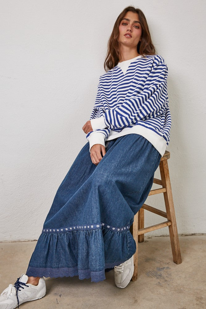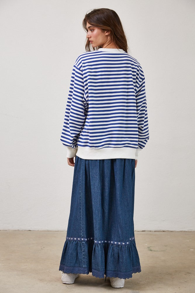 Regular price $85.00 Save $-85.00Pip Pullover Striped Sweatshirt - Blue Stripe