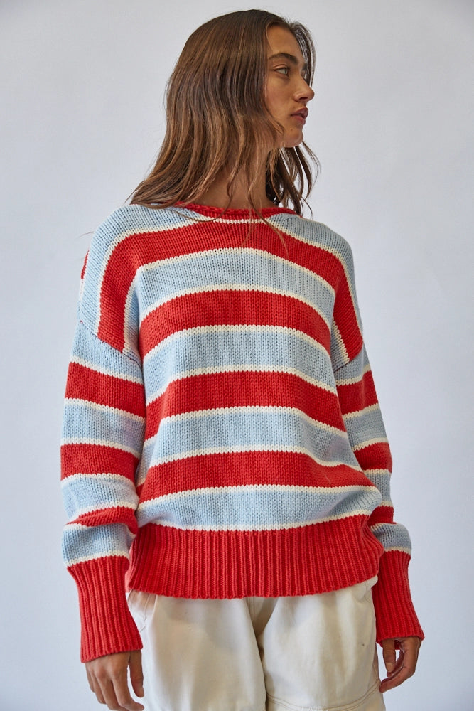 Regular price $85.00 Save $-85.00Nora Relaxed Boyfriend Crew - Red Stripe