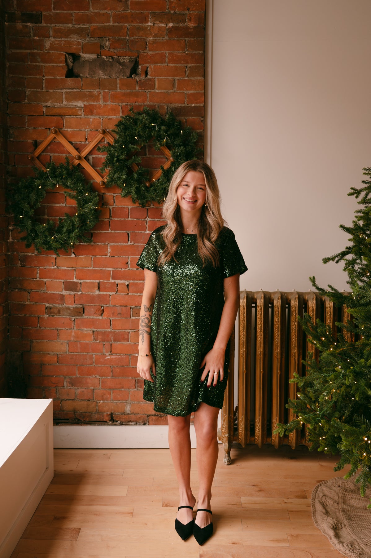 Be the talk of the party in the Nella Sequins Low Back Dress. This shift body dress features full lining for comfort, a low V back, and invisible side pockets. Perfect for the upcoming holidays, make a statement with this dress.